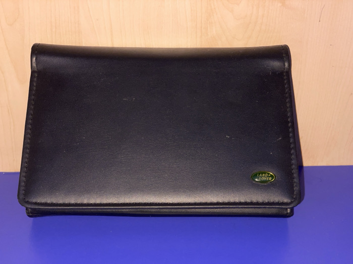 - "In the city of Al-Qanawat Municipality, Syria, a horizontally oriented black Land Rover document wallet rests on a royal blue surface" by FM-qX7cx2, licensed under CC BY 4.0