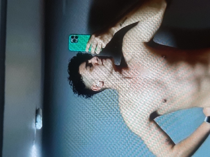 An indoor mirror selfie taken in Barza Municipality, Syria, features a shirtless adult male