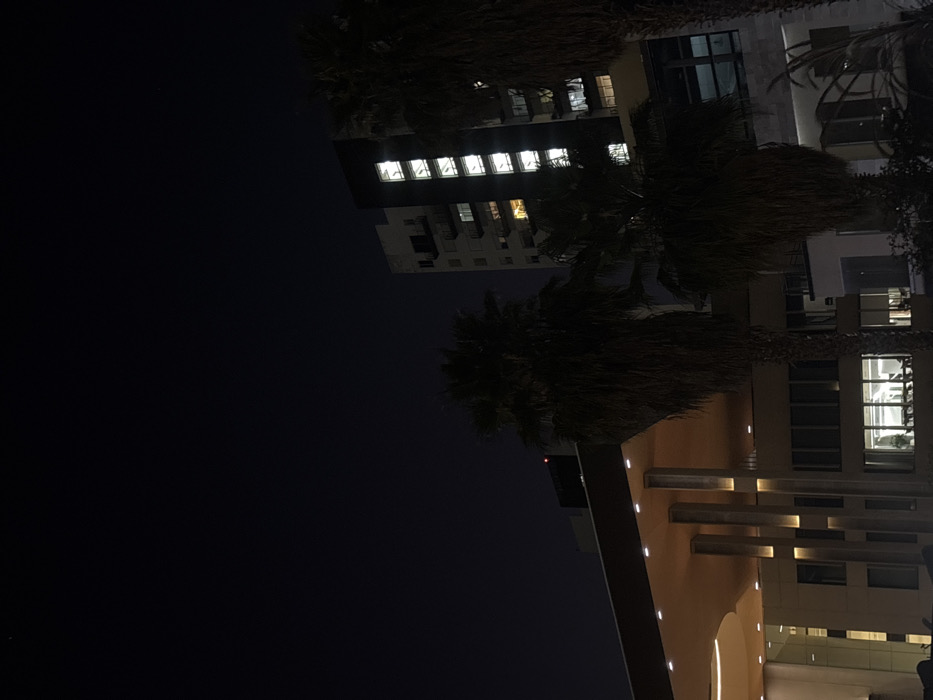 - "The photo depicts a dark, possibly nighttime scene with buildings and palm trees" by FM-wFXMq1, licensed under CC BY 4.0