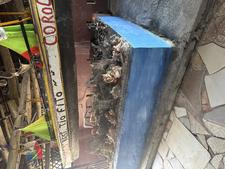 This image depicts an indoor scene within the Restaurant Tio Fito, located in La Ceiba, Honduras