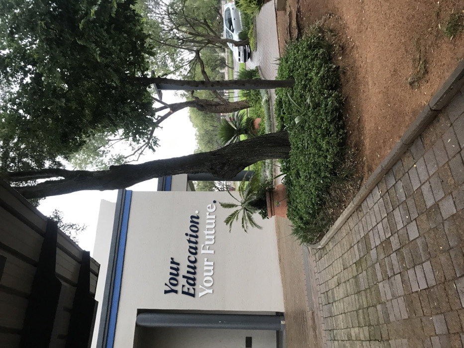An exterior scene depicts a building facade and surrounding landscaped area in Midrand, South Africa