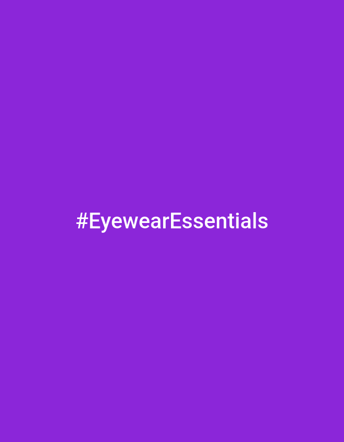 The image displays a solid, uniform purple background. Centered on this background is white sans-serif text, forming the hashtag "#EyewearEssentials". No people, physical objects (other than the textual characters), actions, interactions, or discernible physical environment are depicted. The image contains no visual information indicating a specific geographical location, including the city of Levski, Bulgaria.