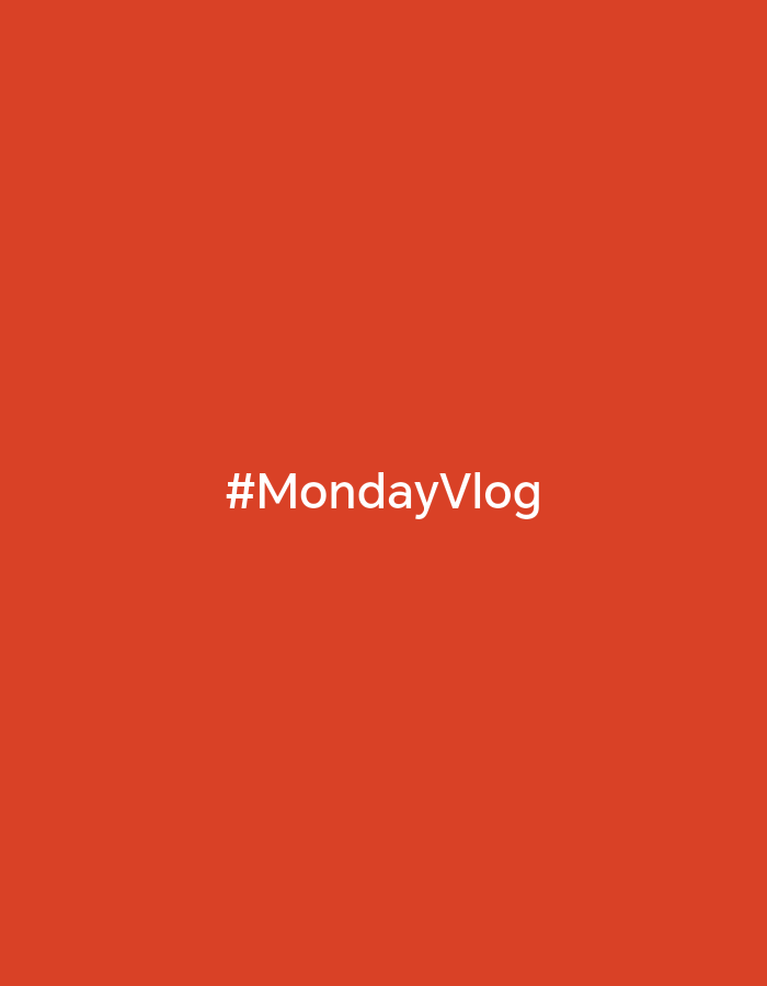 The image presents a uniform, solid orange-red background. Centered horizontally and slightly above the vertical midpoint, the white text "#MondayVlog" is displayed in a sans-serif typeface. No individuals, distinct subjects, other objects, specific actions, or interactions are visible. The environment consists solely of this colored field. The location, specified as the city of Unknown, Unknown, cannot be determined or confirmed from the visual content of the image.