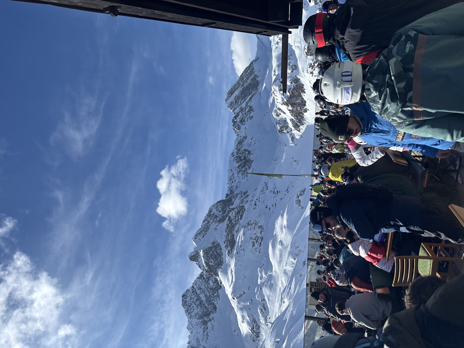 - "The image depicts a crowded outdoor terrace at a ski resort in the mountainous region of Lech, Austria, under a clear blue sky with scattered white clouds" by FM-Wt2QG3, licensed under CC BY 4.0