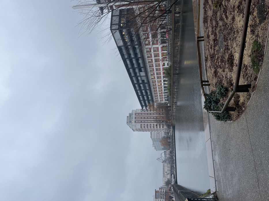 - "A rain-slicked canal flows between urban structures under an overcast sky" by FM-xCFLT2, licensed under CC BY 4.0