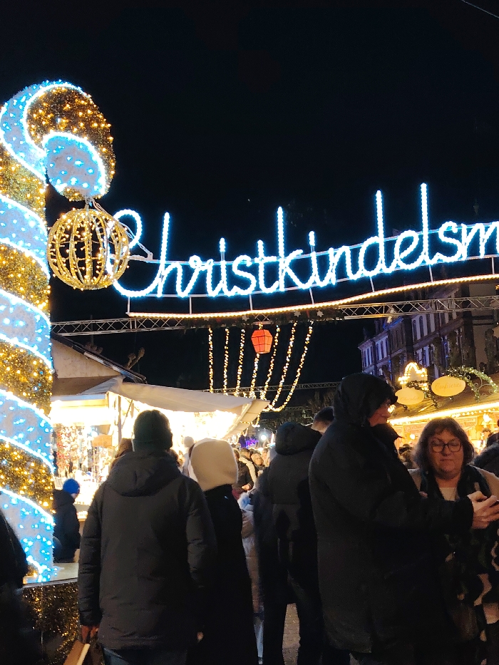- "A crowd gathers beneath the illuminated "Christkindelsmarik" sign at night" by FM-Odse83, licensed under CC BY 4.0