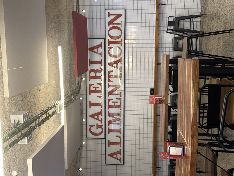 - "This image displays the interior of a commercial food establishment, identified by two prominent stacked signs on the back wall reading "GALERIA" and "ALIMENTACION" in large, distressed red capital letters against a white background with a black frame" by FM-93yLy1, licensed under CC BY 4.0