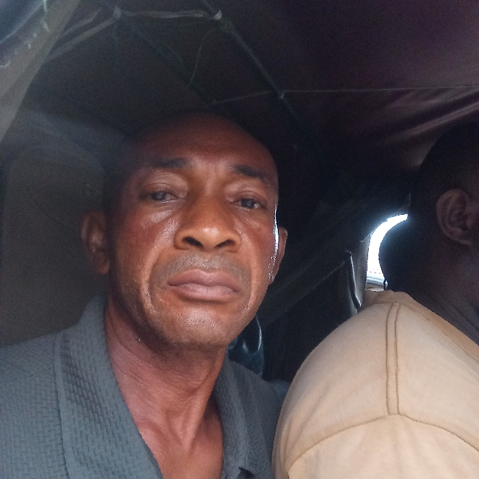 Inside a vehicle in Agbarho, Nigeria, a male individual with dark skin and a shaved or closely cropped head is captured facing forward