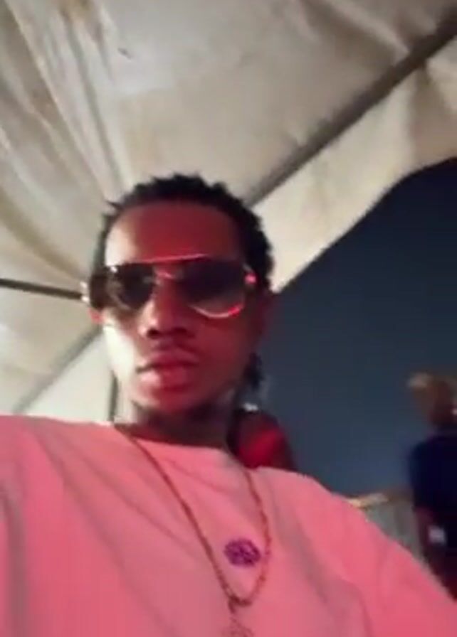 A medium shot captures a person wearing aviator sunglasses, a white t-shirt with a small purple design, and a gold chain with a star pendant