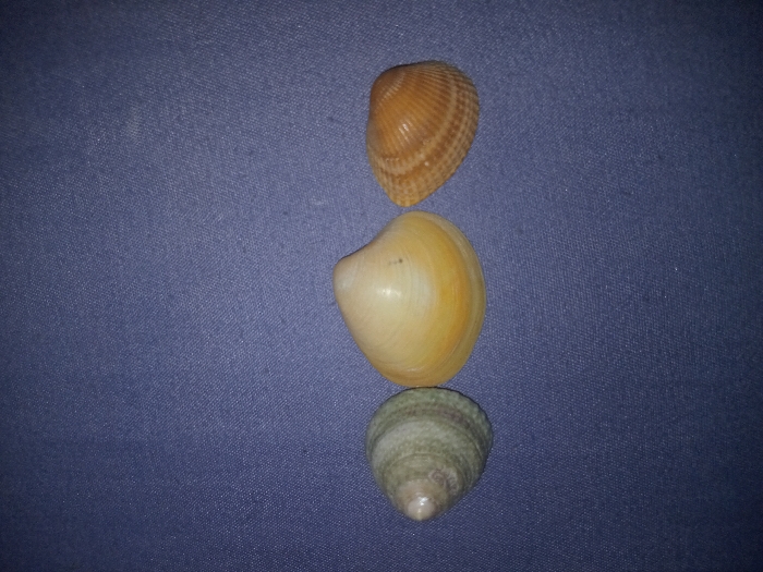 - "Three distinct seashells are arranged horizontally on a dark purplish-blue, textured fabric surface in Rafin Par, Nigeria" by FM-UewVs1, licensed under CC BY 4.0