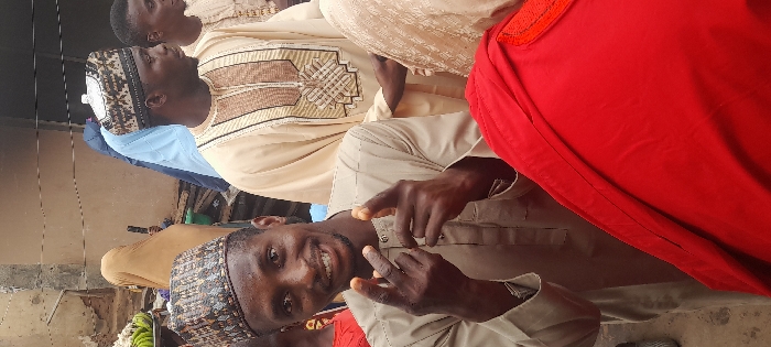 The image displays an outdoor gathering in Toto, Nigeria