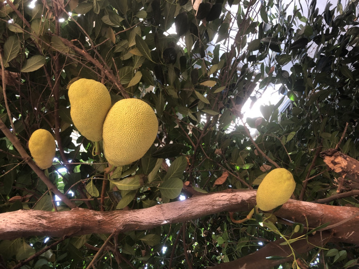 - "The image displays five yellowish-green jackfruits (Artocarpus heterophyllus) hanging from a tree in Ifitedunu, Nigeria" by FM-IhhyI2, licensed under CC BY 4.0