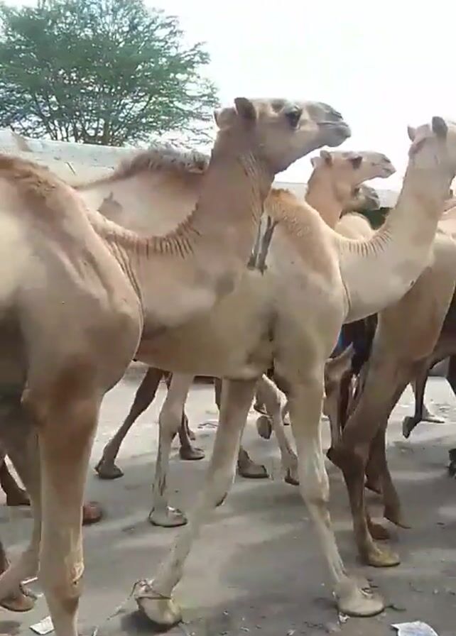 - "herd of approximately ten camels walking on a dirt road" by FM-RR35N2, licensed under CC BY 4.0