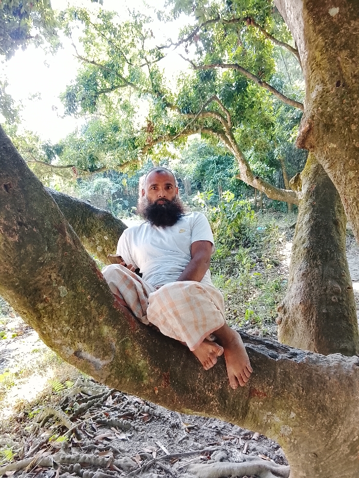 - "A bearded man sits cross-legged on a thick, mossy tree branch" by FM-nGXIE2, licensed under CC BY 4.0