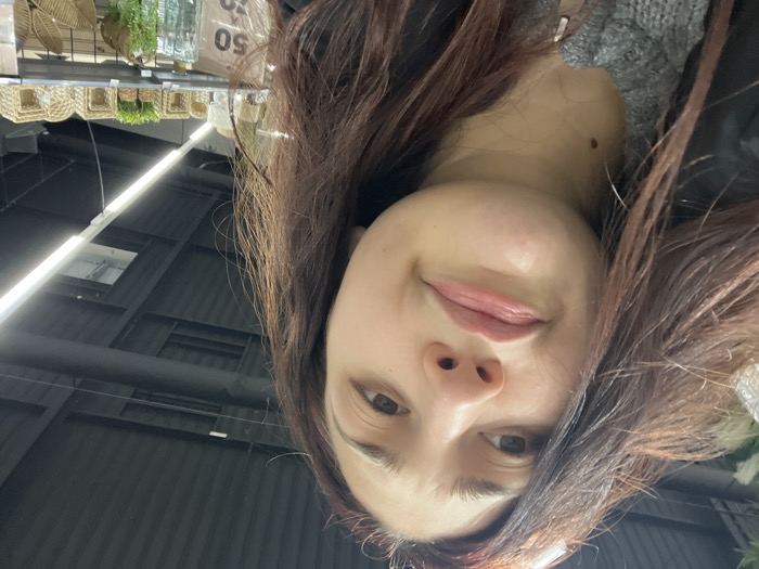 An indoor, slightly low-angle, close-up photograph captures a young adult female within a retail store in Oberhausbergen, France