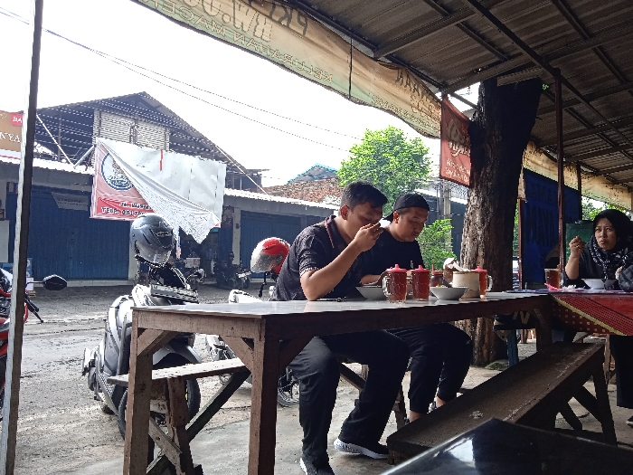 - "Three people eat at an outdoor wooden table under a roofed structure with a large tree trunk as a pillar" by FM-OtAJi2, licensed under CC BY 4.0