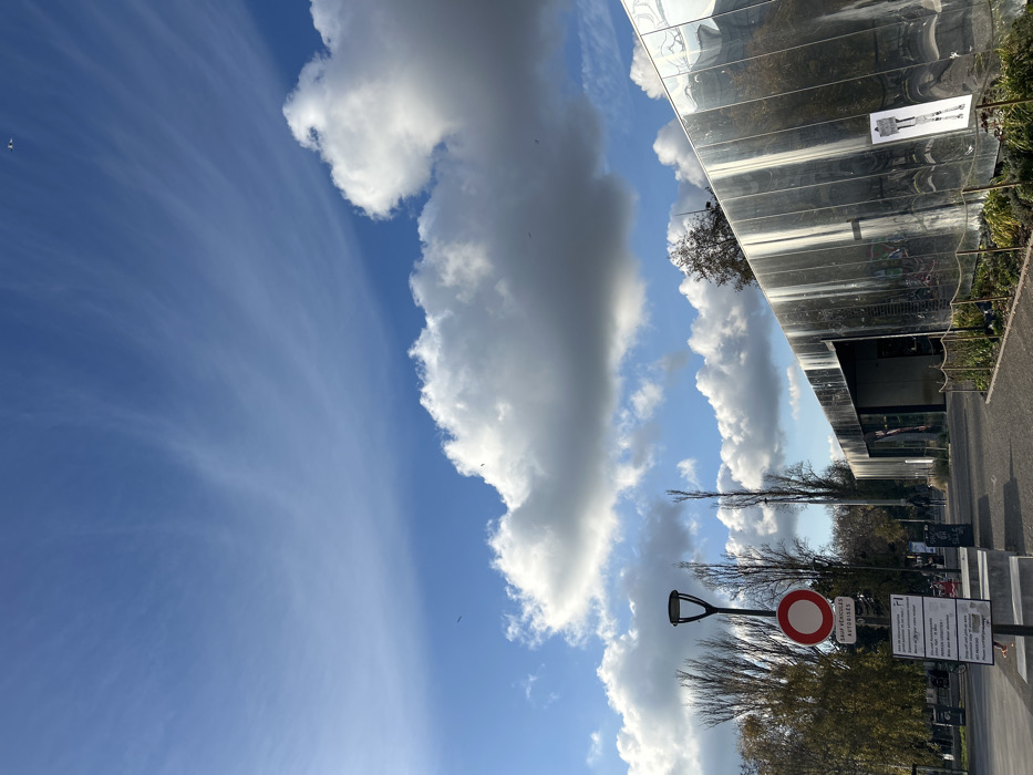 - "The image depicts an urban outdoor scene at the Parc à vélos Gare Centrale in Strasbourg, France, under a bright blue sky with scattered cumulus and wispy cirrus clouds" by FM-C5pvp1, licensed under CC BY 4.0