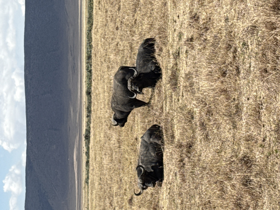 - "The image depicts three African buffalo within a dry, open savanna environment in Mti Mmoja, Tanzania, under a clear daytime sky" by FM-ohOUo2, licensed under CC BY 4.0