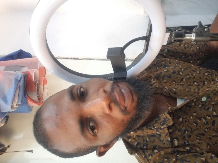 The scene captures a single adult male, presumed to be located indoors in Adankolo, Nigeria
