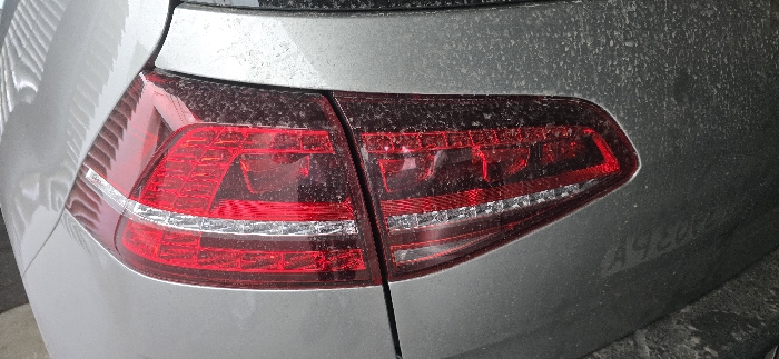 - "This image displays a close-up, oblique view of the passenger side rear quarter panel and taillight assembly of a light gray or silver Volkswagen Golf vehicle" by FM-EwSuH2, licensed under CC BY 4.0