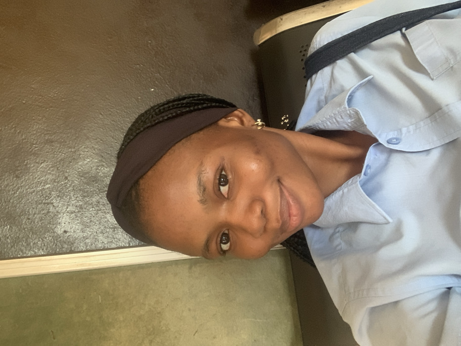 An image taken indoors in Lagos, Nigeria, depicts a young adult female posing for a photograph