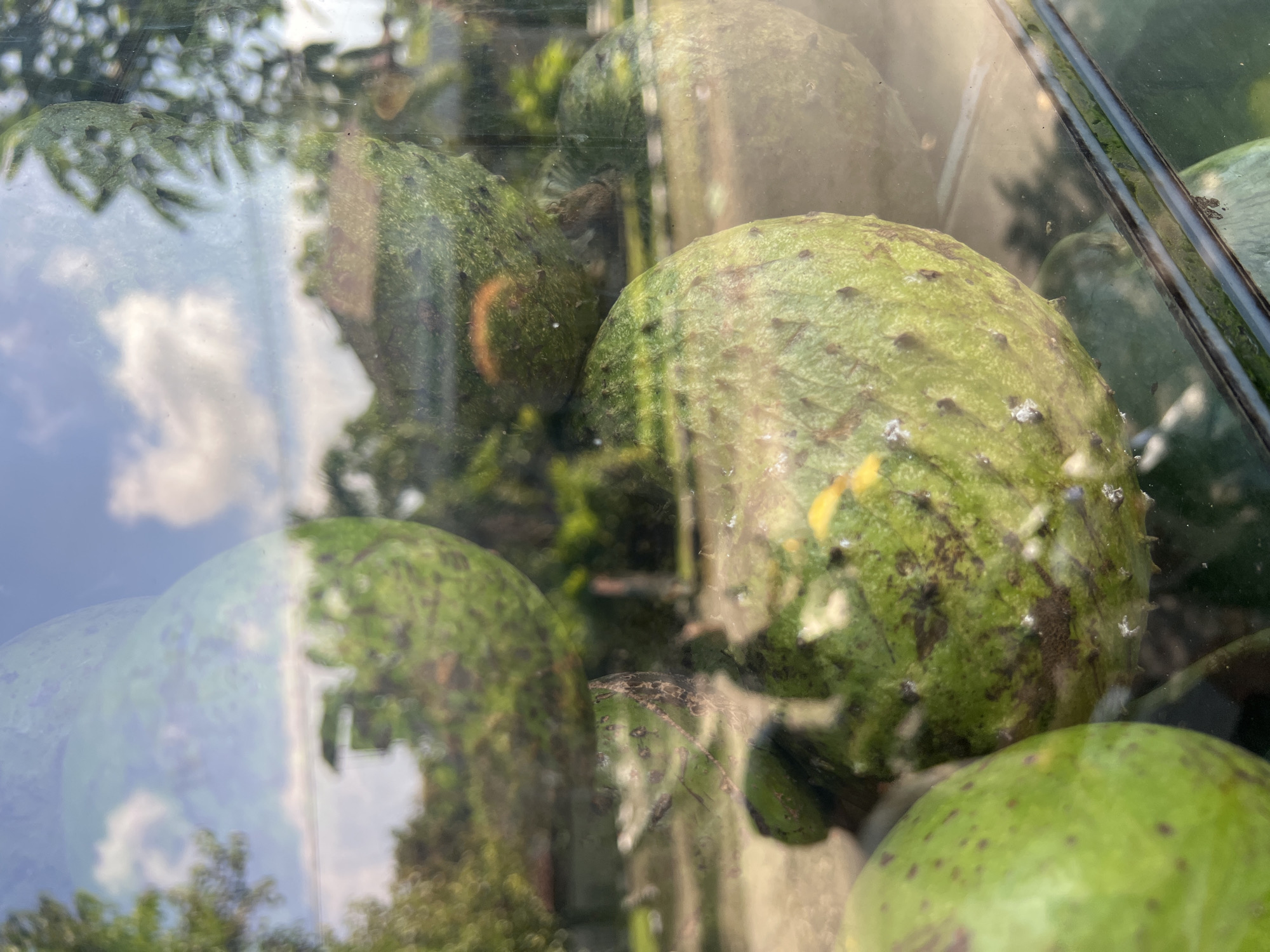 - "The image depicts several green soursop fruits enclosed within a glass display case, located in Jimbaran, Indonesia" by FM-xgQP92, licensed under CC BY 4.0