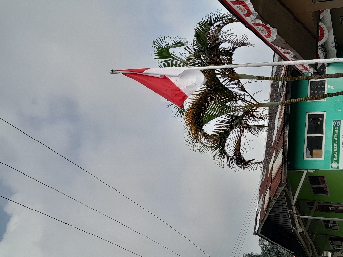 An upward-angled exterior view captures a scene in Ciherang, Indonesia