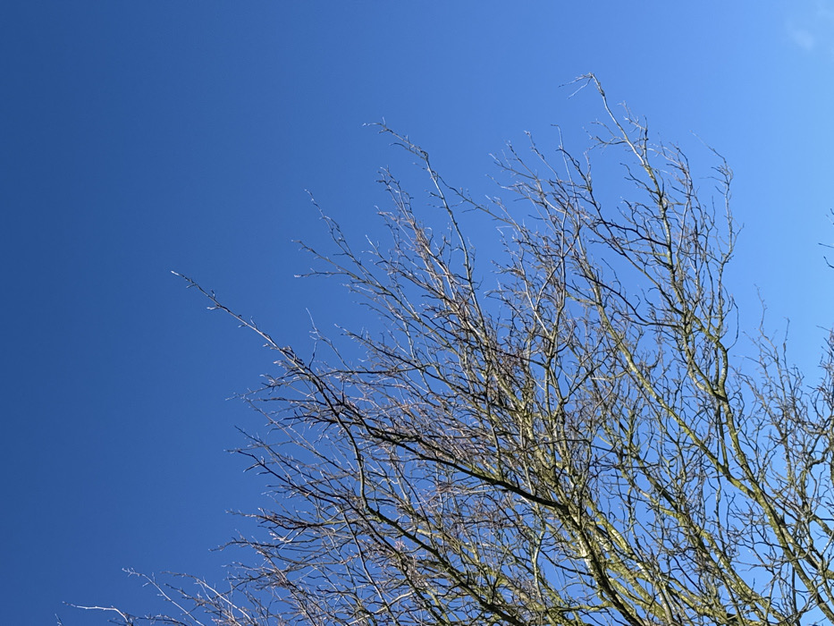 - "The image displays the bare, intricate branch network of a deciduous tree set against a uniformly clear, bright blue sky" by FM-EWyxv2, licensed under CC BY 4.0