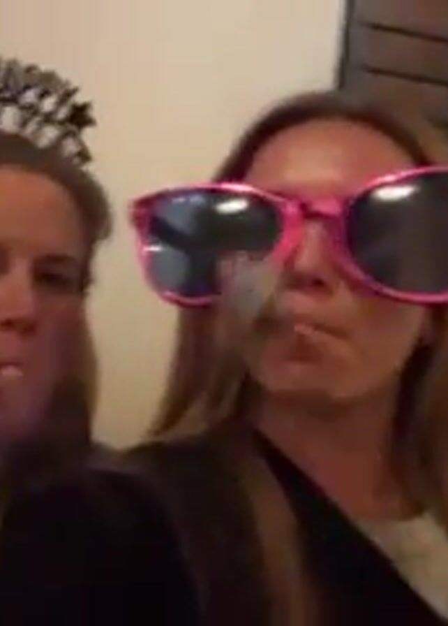 Two fair-skinned women celebrate New Year's