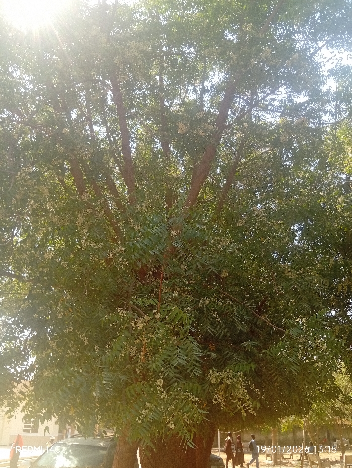- "The image displays a large tree with abundant green foliage and numerous small, light-colored flowers or buds, illuminated by bright sunlight from the upper left" by FM-lRRRB3, licensed under CC BY 4.0