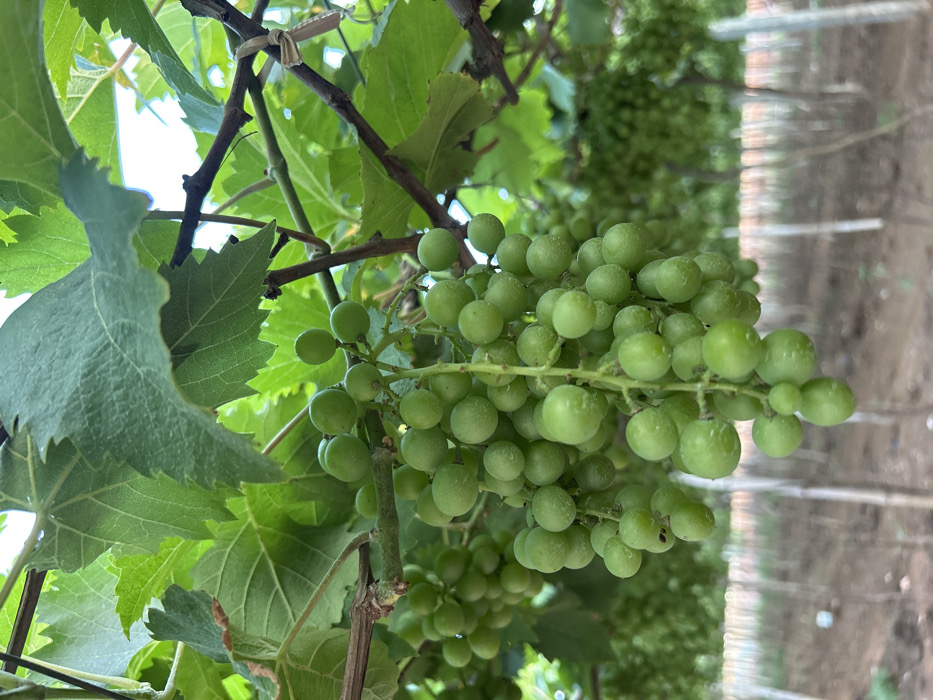 - "The image presents a close-up view of multiple clusters of unripe, spherical, light green grapes hanging from a grapevine in a vineyard in Chinnalapatti, India" by FM-YIfw03, licensed under CC BY 4.0