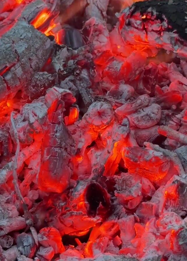 - "close-up view of smoldering embers, with a reddish-orange glow emanating from within the grey ash-covered wood pieces" by FM-aQtHq2, licensed under CC BY 4.0