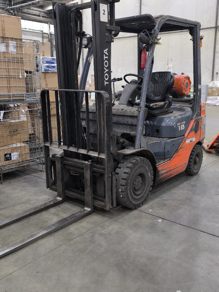 - "A Toyota Tonero 18 counterbalance forklift, primarily orange and dark grey with black components, is stationary on a grey concrete floor within an indoor warehouse facility in Burgas, Bulgaria" by FM-sURN73, licensed under CC BY 4.0