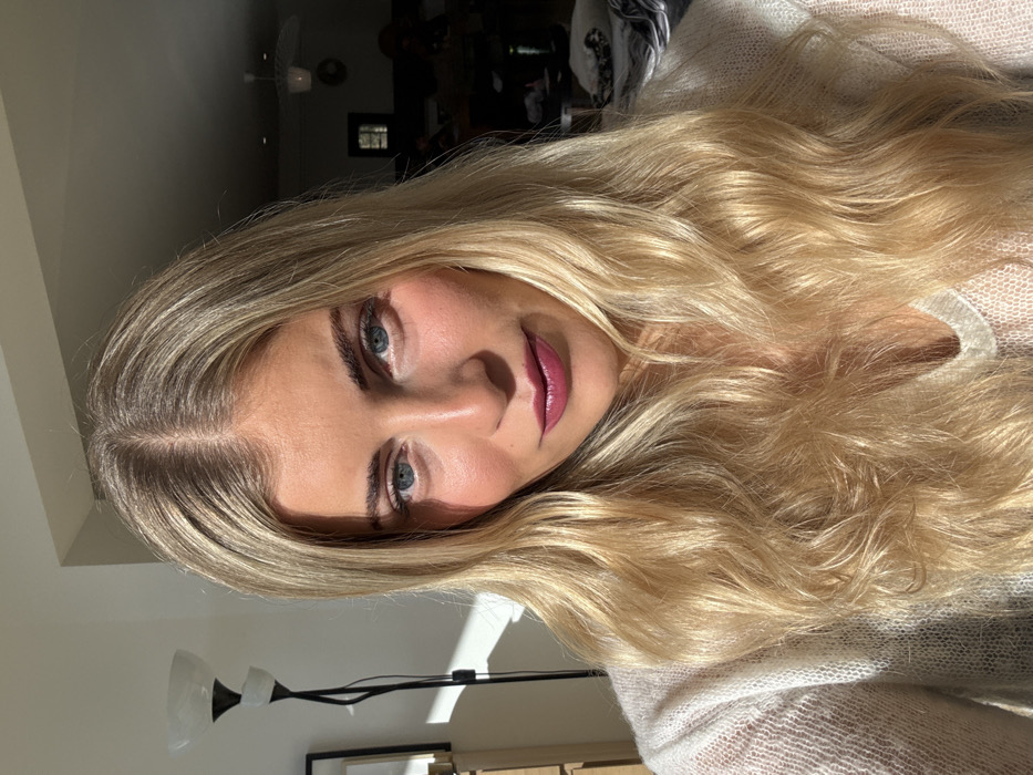 - "The image displays a close-up indoor portrait of a female subject with long, wavy blonde hair parted centrally" by FM-OZmdD3, licensed under CC BY 4.0