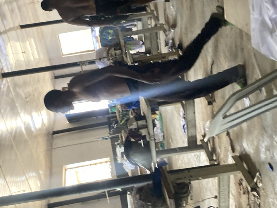 This image depicts the interior of a workshop or factory located in Agege, Nigeria