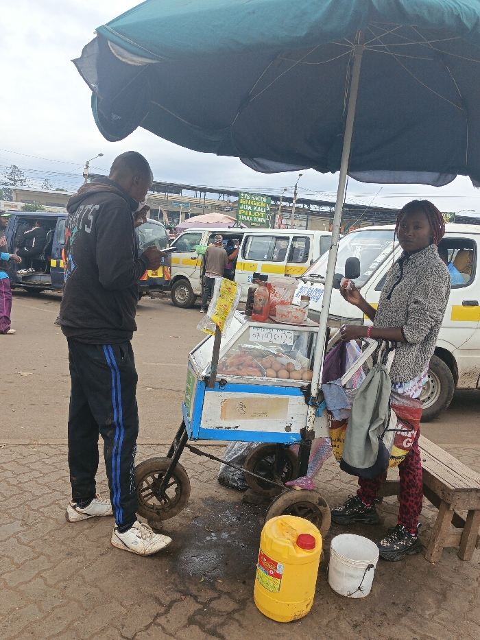 - "The image displays an outdoor street vendor scene located in Thika Township ward, Kenya, within a busy urban environment consistent with a public transport or market area" by FM-c1BvP2, licensed under CC BY 4.0