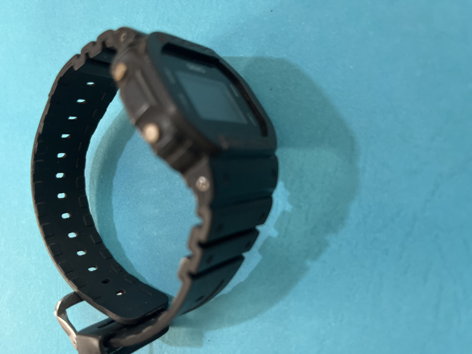- "A black digital wristwatch is depicted resting on a flat, uniform teal-colored surface" by FM-i7Taw2, licensed under CC BY 4.0
