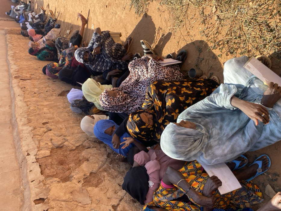 - "Approximately 25 individuals are seated in a linear arrangement on dry, reddish-brown earth, leaning against a weathered earthen wall in Omdurman, Sudan" by FM-FIrXA2, licensed under CC BY 4.0