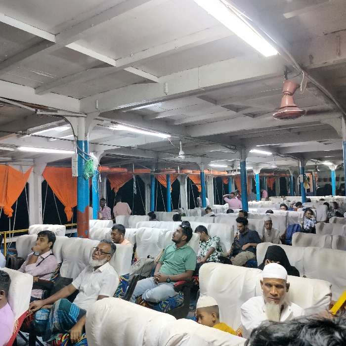 - "The image displays the interior passenger deck of a vessel, likely a ferry or launch, operating in the region of Bhola, Bangladesh" by FM-CC0ji2, licensed under CC BY 4.0
