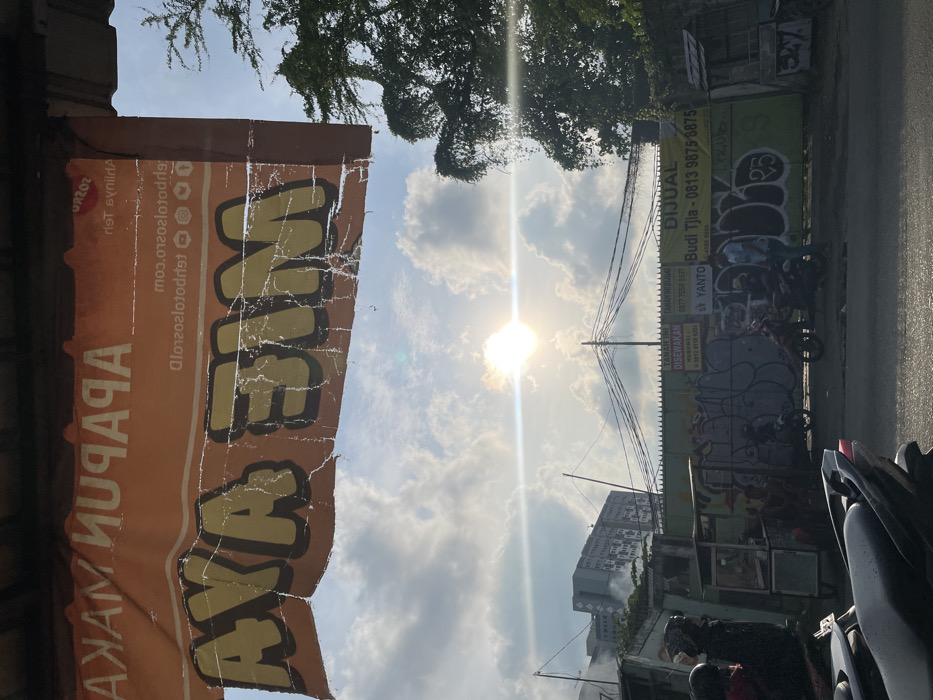 - "This image depicts an outdoor urban scene in East Jakarta, Indonesia, under a bright, partly cloudy sky with the sun prominently visible and causing a lens flare" by FM-9VclY2, licensed under CC BY 4.0