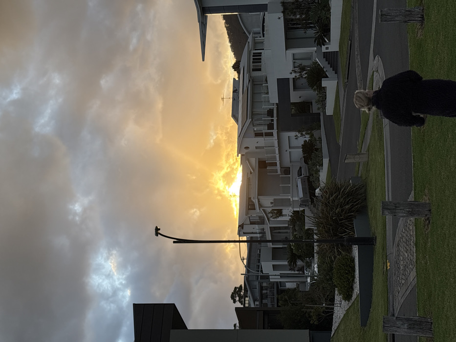 - "The image displays a residential street scene located in Bulli, Australia, under a sky characterized by both grey clouds and a prominent orange-yellow glow on the horizon, indicative of sunrise or sunset" by FM-gAWbO2, licensed under CC BY 4.0