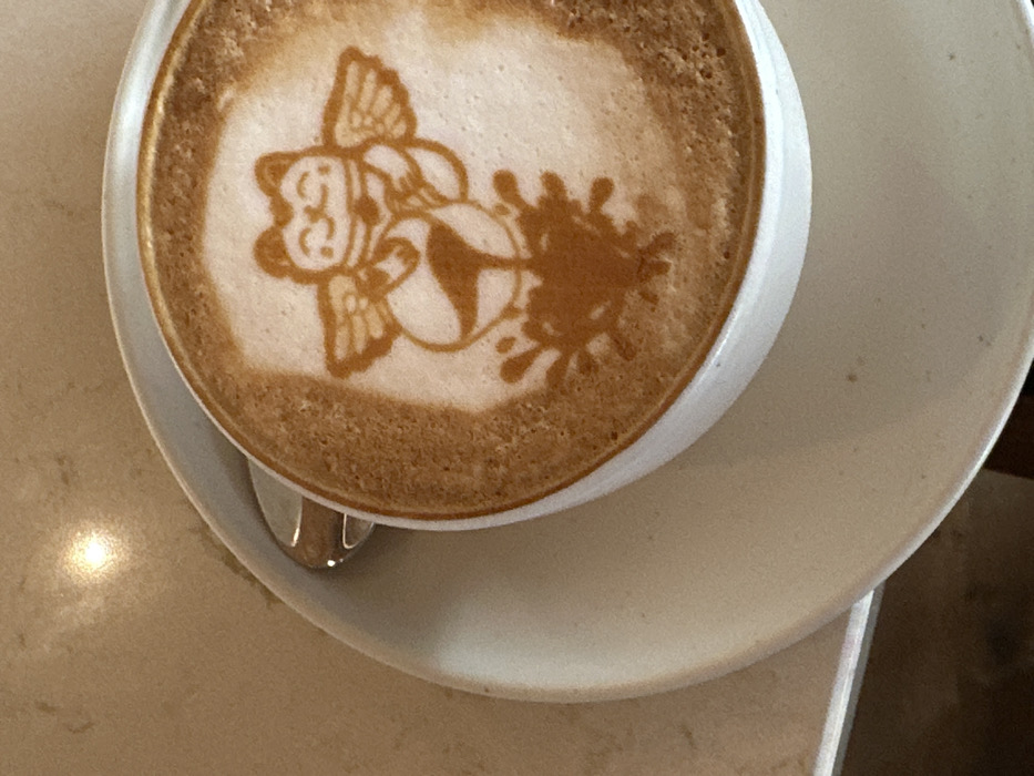 - "An overhead shot depicts a white ceramic cup containing a latte with intricate latte art, positioned on a matching white saucer" by FM-OecyI3, licensed under CC BY 4.0