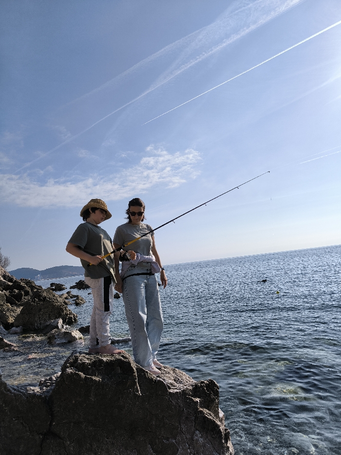 - "Two individuals are depicted fishing from a rocky shoreline in the city of Bar, Montenegro, under a bright, clear sky" by FM-ySTmw1, licensed under CC BY 4.0