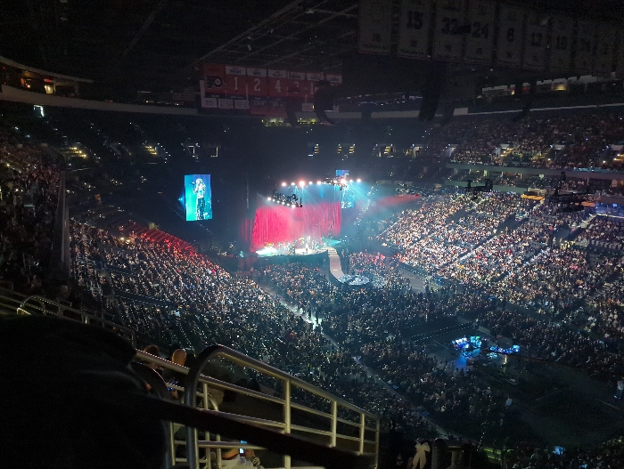 - "The image displays a large-scale indoor concert event at the Wells Fargo Center in Philadelphia, Pennsylvania, United States" by FM-m6zQ02, licensed under CC BY 4.0