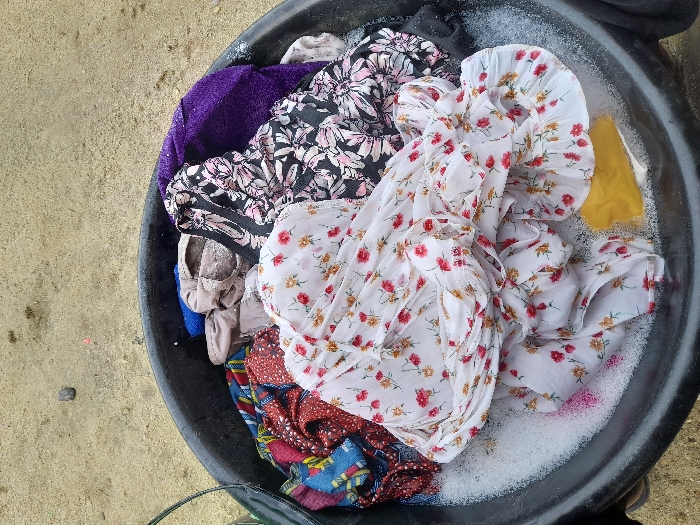 - "A black plastic tub overflows with colorful, partially submerged clothing in soapy water" by FM-DGoAp2, licensed under CC BY 4.0