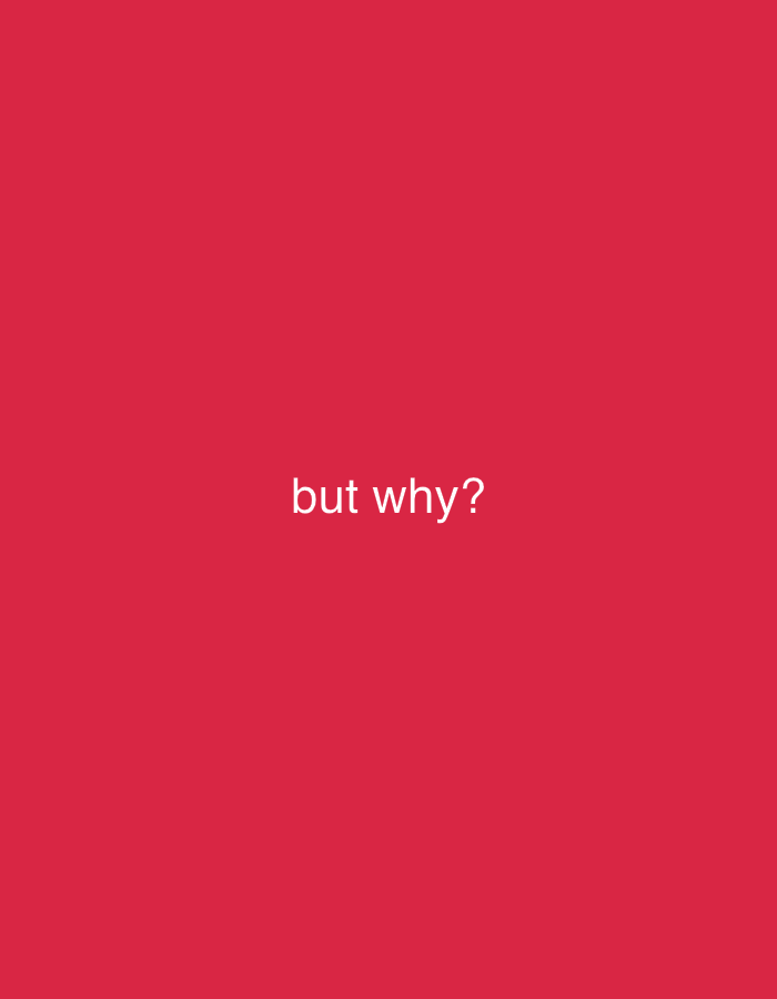 The scene, situated in Samarkand City, Uzbekistan, is composed entirely of a solid, uniform crimson background. Centrally aligned on this monochromatic field, the white text "but why?" is displayed in a lowercase, sans-serif typeface. No individuals, additional subjects, objects, actions, interactions, or specific environmental features beyond the colored background and embedded text are present or discernible within the image.