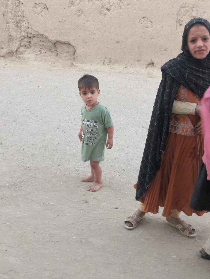 - "A young boy and a partially visible woman stand on a dirt road in Akhundzadakhail, Pakistan" by FM-25YsE2, licensed under CC BY 4.0