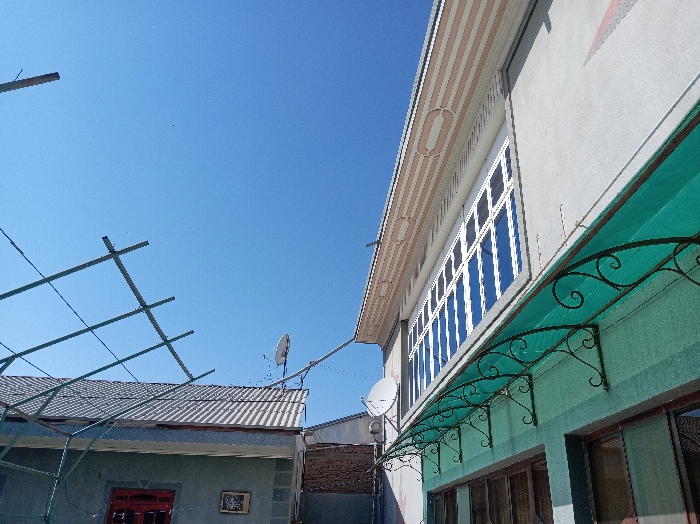 - "The image presents an exterior view of two residential or commercial structures in Kasan, Uzbekistan, under a clear, bright blue sky" by FM-GVfUl2, licensed under CC BY 4.0