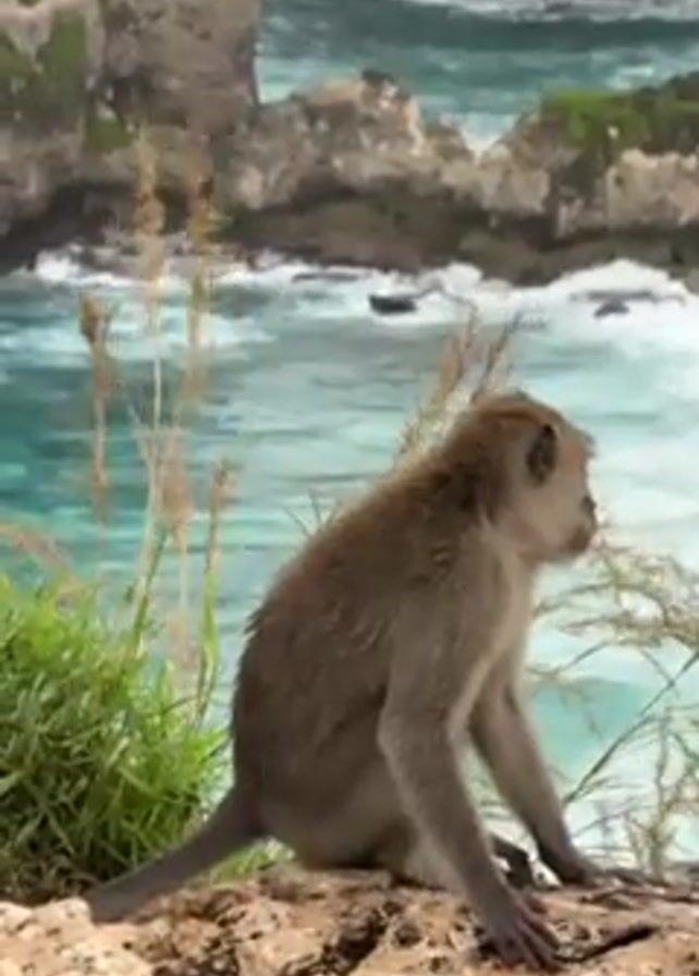- "monkey sitting on a rocky ledge with the ocean and rocky cliffs in the background" by FM-QYAUi2, licensed under CC BY 4.0