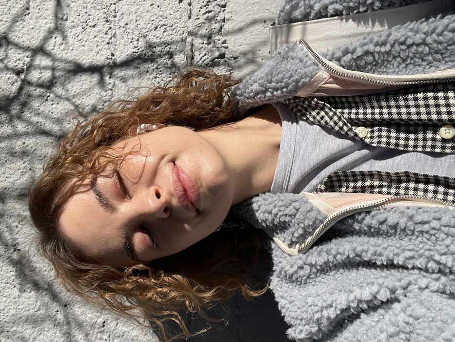 - "A close-up portrait shows a female subject with light brown, curly hair, her eyes closed, and a subtle smile" by FM-GgSpJ3, licensed under CC BY 4.0